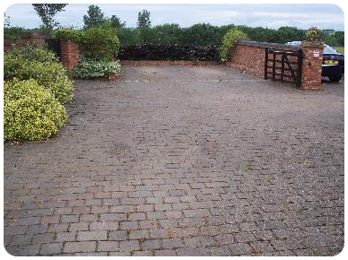 The 50/50 clip to the right of picture (below right) showing the drive just after cleaning, shows the right hand section of the blocks re-sanded. This underlines the necessity of re-sanding the blocks with kiln dried sand after pressure washing to refill the joints and stabilise the blocks.